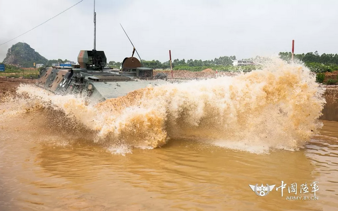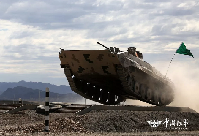 集訓官兵駕駛戰車快速通過車轍橋