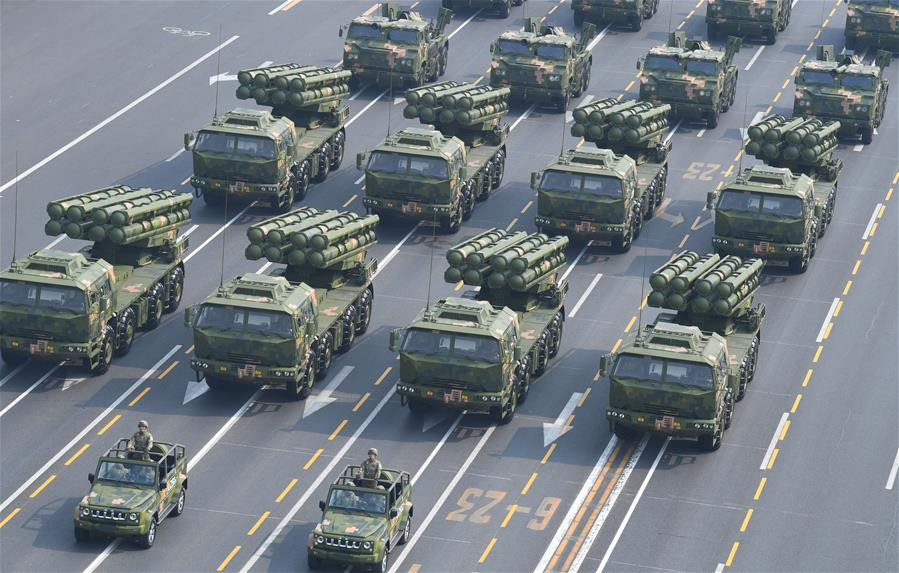 10月1日,慶祝中華人民共和國成立70周年大會在天安門廣場隆重舉行,中共中央總書記、國家主席、中央軍委主席習近平發表重要講話并檢閱部隊。在隨后的閱兵式上,中國兵器工業集團研制生產的眾多高新裝備與受閱部隊一道,浩浩蕩蕩、氣勢如虹通過天安門廣場,展示了人民軍隊在新的歷史起點上重整行裝再出發,闊步邁向世界一流軍隊的嶄新風貌和威武雄姿。 強國必須強軍,強軍必須利器。此次國慶閱兵式規模盛大、恢弘壯觀。兵器工業集團研制生產的16型裝備接受了黨和人民檢閱,涉及所屬的兵科院、內蒙古一機集團、北京北方車輛集團、江山重工集團、齊齊哈爾北方機器集團、北奔重汽、北方信息院、江麓集團、鐵馬集團、中國北方車輛研究所、西北機電工程研究所、西安現代控制技術研究所、光電集團、北方動力研究院、北重集團、江南工業集團、導航與控制技術研究所、北方激光院、夜視研究院等10多家兵器工業企事業單位總裝、研制和為主保障,分布在受閱裝備方隊7個模塊中的陸上作戰、防空反導、信息作戰、無人作戰、后裝保障5個模塊、32個裝備方隊中的12個方隊,集中展示了兵器工業集團履行強軍首責、自主創新的最新成果。 國慶第一響:“國之禮器”渾厚響亮。由兵器工業集團設計制造的56門最新式禮炮外觀大氣,鳴放時聲音渾厚、洪亮、穩定,使用安全,操作更趨人性化,零污染,擊發可靠,自動化、信息化程度高。 禮炮鳴響 一、陸上作戰模塊 坦克方隊:“陸戰之王”箭形出場。99A主戰坦克作為陸軍地面作戰無可替代的主戰裝備,一如既往、氣勢磅礴呈“箭”形行進在地面裝備方隊的最前列、頭陣領銜。99A坦克是我國自主研制的首型信息化坦克,它能夠依靠其強大的火力、防護能力和機動能力,在運動中精準首發擊中目標,作戰能力上了新臺階,能殲滅敵方的主戰坦克和其他裝甲目標,摧毀敵野戰、堅固防御工事和有生力量。 坦克方隊 輕型裝甲方隊:新型輕坦熠熠生輝。備受矚目的15式輕型坦克首次公開亮相、揭開神秘面紗。15式輕型坦克作為全域機動作戰裝備,具有機動能力優越、打擊手段多樣、生存能力強、信息化程度高等突出特點,主要遂行快速部署、機動突擊、要地奪控等作戰任務。04A式履帶步兵戰車具有全面的信息化能力、強大的火力性能、全時域打擊能力、良好的全域機動能力、全方位的綜合防護能力和優越的人-機-環性能。 輕型裝甲方隊 兩棲突擊車方隊:“海上超跑”名不虛傳。05A式兩棲裝甲突擊車是我國海軍陸戰隊的核心作戰力量,動力強勁,信息化程度、信息獲取能力強,主要用于遂行搶灘登陸、抗登陸等作戰任務,具有擊穿敵裝甲目標和破壞敵海岸防御工事的能力,具有在行進間對移動目標進行射擊的能力和全天候的作戰功能,是聯合作戰的“尖刀利刃”。在“國際軍事比賽”的“海上登陸”賽中,超強性能總是驚艷賽場,因其極快的速度,被軍迷親切稱為“海上超跑”、“水中蛟龍”。 兩棲突擊車方隊 空降兵戰車方隊:“軍事比武”捷報頻傳。03式輕型履帶步兵戰車可快速機動、遠程直達、縱深打擊,能夠利用重型傘降系統空投,同時配備強大的火力系統,具有對敵坦克、裝甲車、防御設施、有生力量和低空飛機的打擊能力。該車型多次參加“國際軍事比賽”“空降排”戰車組項目比賽,均取得優異成績。 空降兵戰車方隊 自行火炮方隊:“戰爭之神”威名遠揚。此次受閱的箱式火箭炮和車載155毫米加榴炮兩型裝備均屬首次亮相。箱式火箭炮可對遠縱深面目標進行火力壓制,對遠縱深點目標實施精確火力打擊,具有“一裝多能、一炮多用”的特點,高精度、大密度火力,是名副其實的“火力鐵拳”。車載155毫米加榴炮順應了世界先進大口徑火炮技術發展趨勢,具有火力猛、反應快、精度高等特點,主要用以滿足我軍對遠程壓制火力的需要,在進攻和防御戰斗中為地面部隊作戰提供火力支援。插上信息化翅膀的現代火炮及火箭炮武器系統更是所向披靡。 自行火炮方隊 反坦克導彈方隊:“坦克克星”枝繁葉茂。紅箭10反坦克導彈發射車信息化程度高、操作簡便,能夠對超視距縱深的坦克、裝甲車輛、堅固工事等高價值地面點目標及低空低速飛行直升機實施精準打擊。目前,紅箭反坦克導彈家族人丁興旺,開拓研制了不同射程、多樣化制導體制、多種平臺、多功能毀傷打擊的產品族。近年來,兵器工業集團為滿足我軍武器裝備信息化建設的需要,研制了涵蓋地、空、艦以及信息對抗等多類型智能彈藥,全面覆蓋遠、中、近各射程范圍,讓各類武器平臺如虎添翼。 反坦克導彈方隊 武警反恐突擊方隊:“處突反恐”舍我其誰。03型輪式裝甲防暴系列車作為警用輪式裝甲車輛,具有操作簡單方便,駕駛舒適,行駛平穩,較高的速度和機動性,油耗低,結構緊湊,布置合理以及可靠性好,維修方便等特點,主要用于執行城市防暴、反恐、邊防巡邏、處理突發事件等任務。 武警反恐突擊方隊 二、防空反導模塊和信息作戰模塊 預警雷達方隊和信息作戰方隊:北奔重卡穩定可靠。預警雷達方隊的兩型雷達和信息作戰方隊的一型裝備采用北奔重卡車型底盤,這些底盤均為常規全驅批產車型,技術成熟,質量穩定可靠,經過大批量的裝車驗證和試驗驗證。信息作戰方隊的一型裝備采用兵器工業集團研制生產的裝甲指揮車底盤,主要