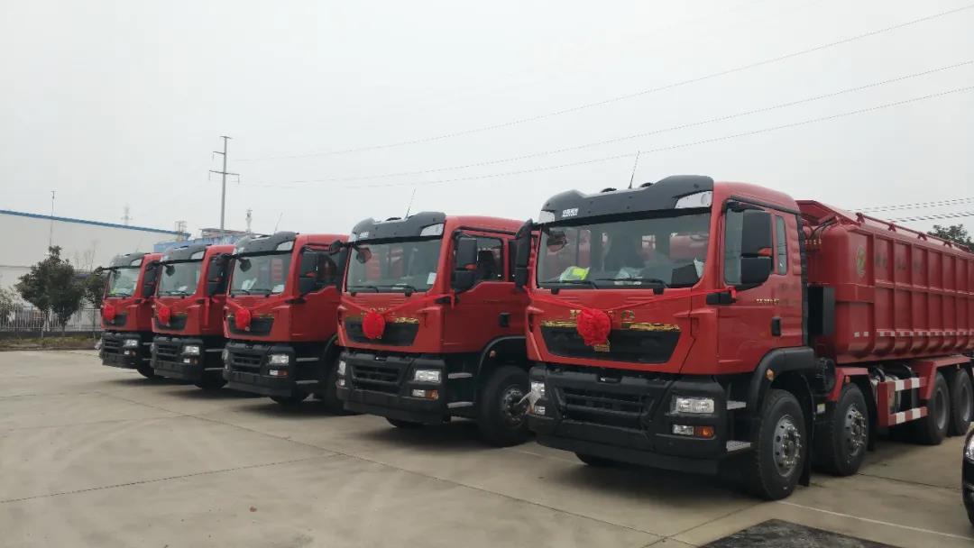 2月11日,江山重工研究院專用車公司舉行粉粒物料運輸車批量交車儀式。五臺電廠車整裝待發,即將交付河南客戶,順利打響虎年市場開拓“第一槍”。