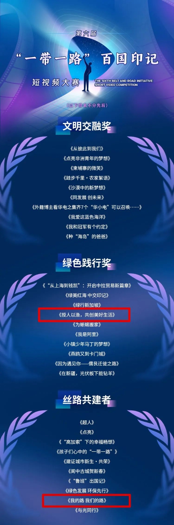 近日,由中國公共外交協會主辦,國務院國資委新聞中心等單位協辦的第六屆“一帶一路”百國印記短視頻大賽獲獎名單正式揭曉,經過激烈角逐,共有108部作品脫穎而出,中國兵器工業集團北方公司兩部作品獲獎,其中,北方礦業《授人以漁,共創美好生活》榮獲“綠色踐行獎”,北方國際《我的路 我們的路》榮獲“絲路共建者”。